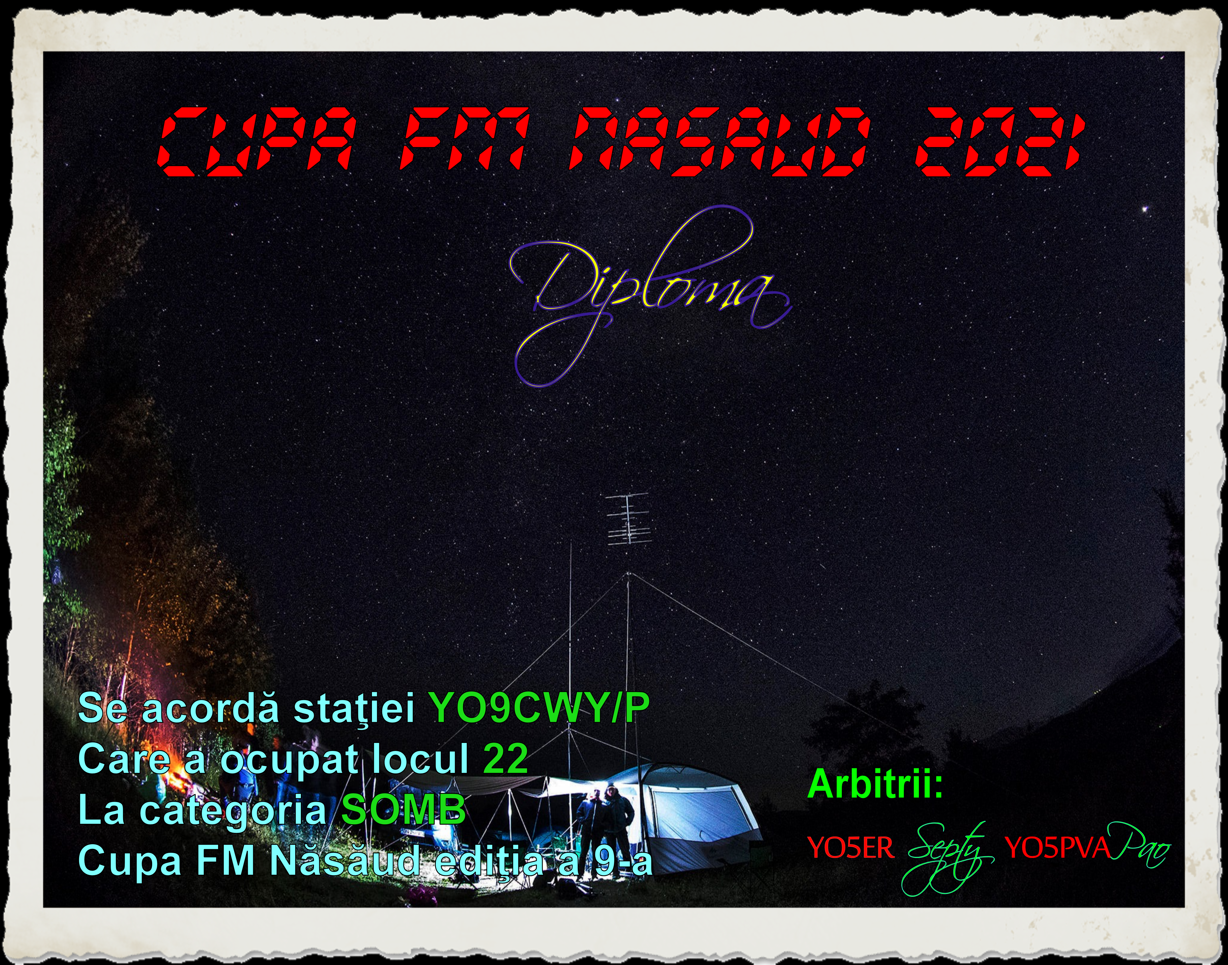 Cupa FM Nasaud 2021 a fost castigata de catre YO3GNF/P cu un total de 12733 puncte la categoria C. Cel mai bine clasat nasaudean este YO5VAE/P care a reusit sa acumuleze, tot la categoria C, 6156 puncte! Felicitari!